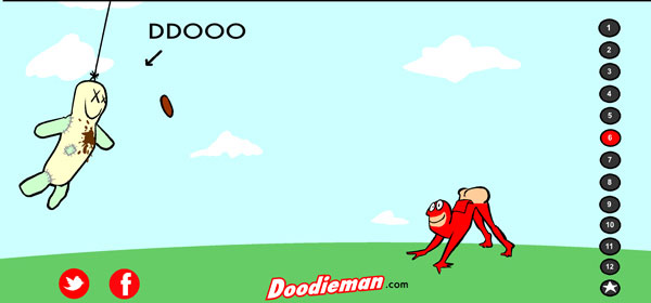3、设置好后,点击右侧1-12按钮,玩家可操纵大便超人释放大便攻击人偶;