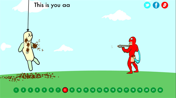 若游戏不能运行,可点击前往下载Adobe AIR ,下载安装完成后打开游戏即可。 1、下载进入大便超人,点击屏幕开始游戏;