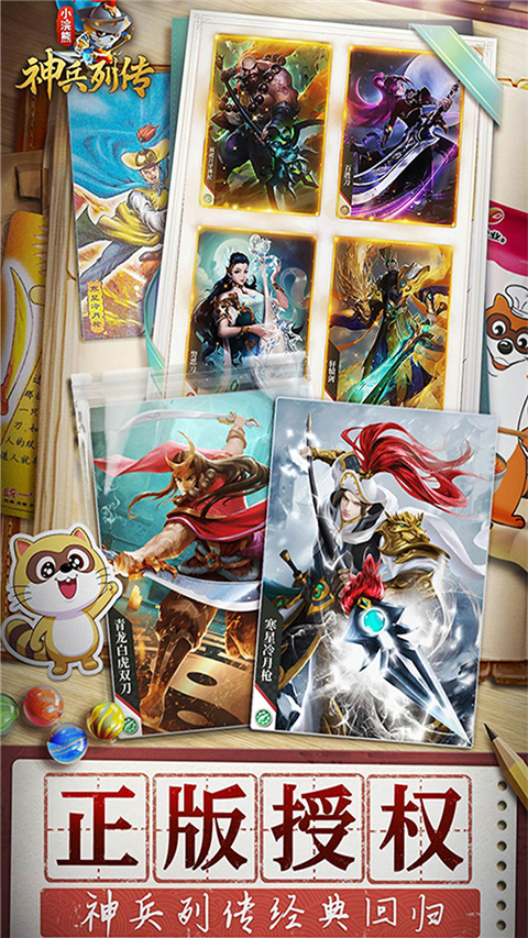 1、首款小浣熊卡牌,天天648红包版,送5000连抽。 2、画风焕新,童年集卡时光再现。 3、爆爽乱斗,三国水浒猛将对决。 4、新潮美术,国风高颜英雄齐聚。 5、正版授权,神兵列传经典回归。游戏截图