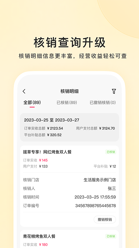 1、快手本地商家 立享海量客源,助力生意腾飞。 2、新版商家首页 经营数据清晰呈现,核心操作一键触达。 3、核销查询升级 核销明细信息更丰富,经营收益轻松可查经松。 4、新增消息中心 消息分类清晰简洁,全面提升经营效率。更新日志