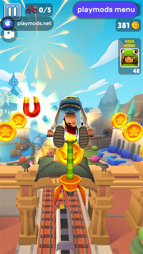 1、与你的伙伴们在火车间穿行! 2、鲜艳生动的高清画质! 3、冲浪滑板! 4、颜色动力飞行器! 5、闪电般快速的飞行技巧! 6、接受挑战并帮助恁的伙伴!地铁跑酷国际服定制版本如何使用菜单功能