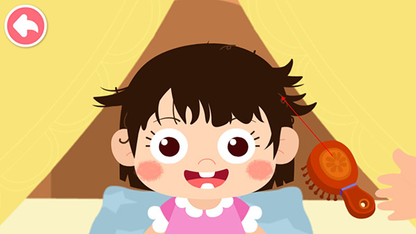 5、妹妹吃饱后就可以帮她整理好发型啦,用右边的梳子给妹妹梳梳头。