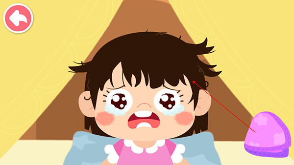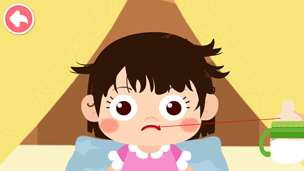 3、首先宝宝需要先帮妹妹擦一擦小脸蛋,点击右边的毛巾帮助妹妹把脸擦干净。