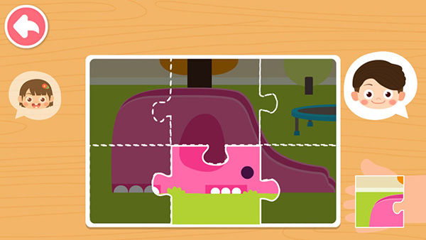 9、最后就可以和妹妹一起玩耍拼图游戏啦,让宝宝将拼图拼好就可以啦,家长也可以帮助宝宝一起完成哦!