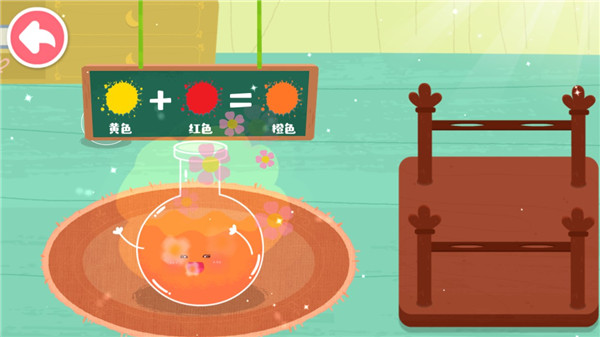 1、捕捉颜色精灵 出发去捕捉颜色小精灵啦!宝宝需要根据提示,捕捉相应的颜色小精灵。如果捕捉到正确的小精灵,会出现对应颜色名称的语音提示,比如“黄色”,帮助宝宝了解颜色名称!(认知颜色) 2、调出各种颜色 宝宝混合两种颜色,能调出另一种颜色。看,混合红色和黄色,调出了橙色。混合黄色和蓝色呢?哇,是绿色。混合红、黄、蓝三种颜色,会调出什么颜色呢?宝宝动动手试一试吧!(发现调色规律) 3、手工涂色DIY 用调好的颜色,给手工艺品涂色,制作精致工艺品吧!根据提示,给工艺品涂上正确的颜色。该涂黄色还是淡黄色?宝宝要仔细观察,分清相似色,匹配目标颜色,进行涂鸦填色哦!(强化颜色认知)奇妙手工调色游戏玩法介绍