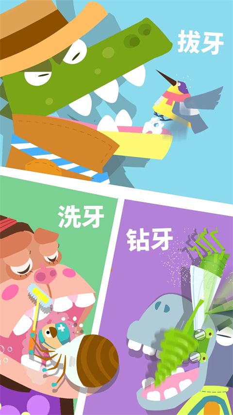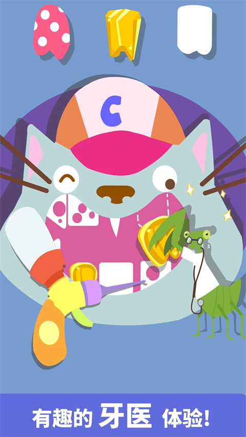 1、8个可爱角色,6种不同玩法,欢迎宝宝尽情探索 2、新颖有趣的治疗方式,保护牙齿也可以很好玩 3、通过角色扮演的互动,让宝宝消除对医生的恐惧,不再害怕拔牙、治牙 4、让孩子在游戏中独立思考,自由学习,享受探索世界的乐趣软件亮点