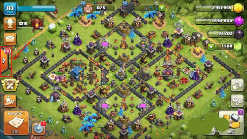 这是一套以野猪为主的流派,但是野猪要等到后期时机成熟才能放,前期主要是靠胖法或者天女进行清理大部分边路建筑,而且这个流派也比较靠援军的蓝胖,如果没有蓝胖,可能效果就没有这么强势了。