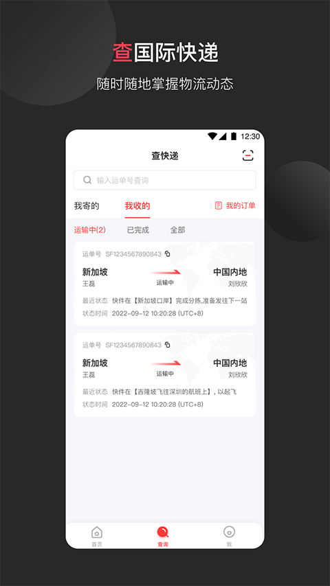 1、寄快递: 手机下单,自寄或预约上门,省时省心。 2、查快递: 路由信息实时更新,随时跟踪物流动态。 3、多语言: 中英日韩版本,满足各人群需求。顺丰国际怎么查物流