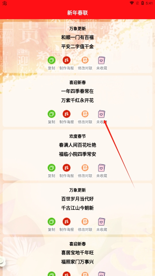 5、点击对联收藏,随时选择您喜欢的对联资源
