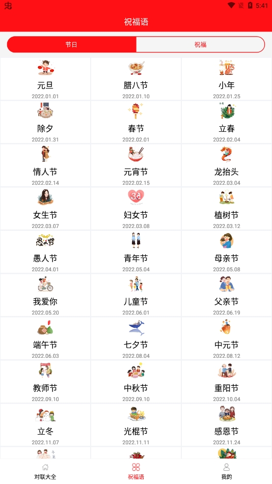 4、在祝福语页面当中,还有各种节日祝福语功能。