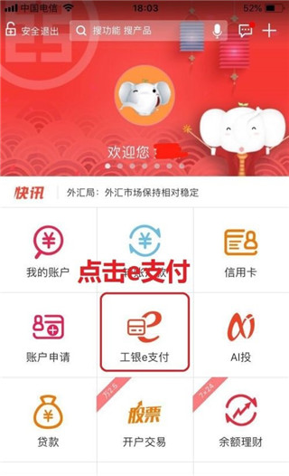 1、首先打开工商银行手机银行,找到工银e支付,并点击