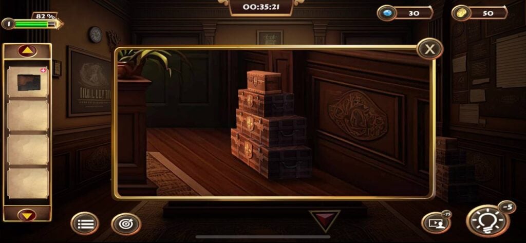 现在,将这些盒子放在房间左侧时钟的下方。确保最大的盒子放在最下面,最小的盒子放在最上面,就像下面的截图中显示的那样。