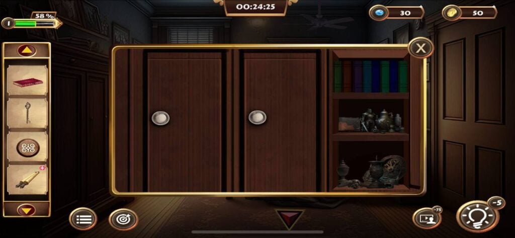 从盒子里取出书,然后点击房间右侧沙发旁的书架。打开书架,从你的物品栏中添加三本缺少的书来填补空缺。按照“1-2-3-4-5”的顺序旋转书架上的书,即可解开谜题。