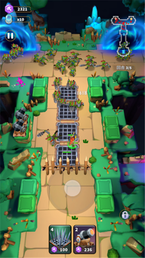 3、安置地刺和炮台射击大量的敌人,守卫水晶的安全,合理的安置炮台。