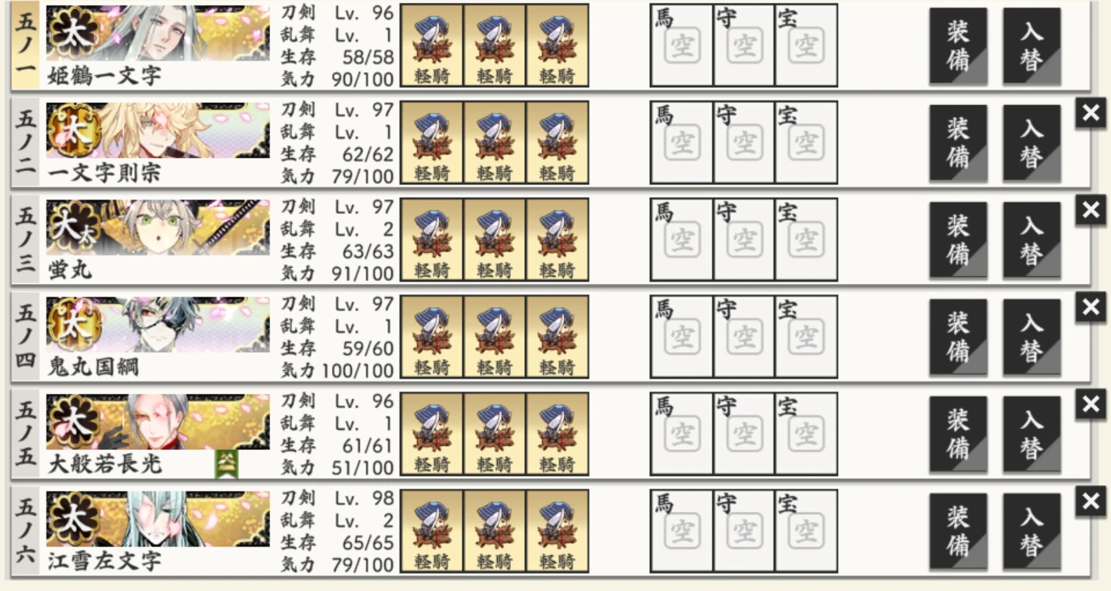 (个人向)(一队短刀,一队太刀) 首先,短刀是传统的,极短强度大家是知道的,所以一定要练。 短刀没有必练,但是博多最好尽快极化。