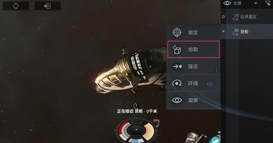 (这层血条代表的是装甲的损伤,可以开启装甲维修器进行维修,护盾维修器只能维修护盾受到的损伤,装甲维修器则可以修复装甲损伤) 消灭完所有敌舰后,接近货柜,准备拾取战利品。