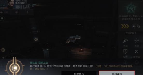 2、在完成教程后,我们的克隆飞行员获得了属于自己的执照,新伊甸之旅正式开始,游戏开始时,玩家会在一处空间站中,并且会收到一份系统的提示,是否要参加新手飞行员训练课程。