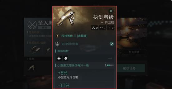 (由于守护者多出一个额外的中型能量槽,我们可以将系统赠送的停滞缠绕光束装配在守护者身上)记得为守护者更换制式装备,然后我们就可以出发完成新的任务了,这一次,任务的奖励可是T3级别的护卫舰!