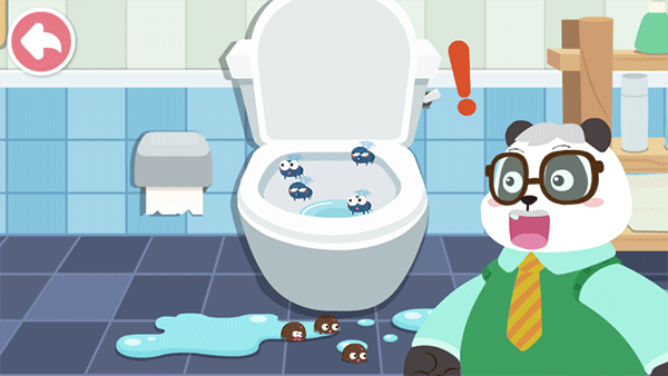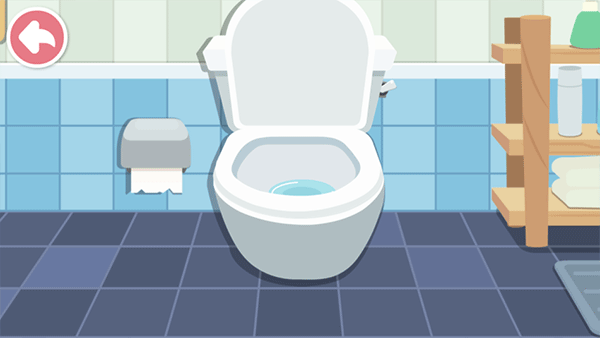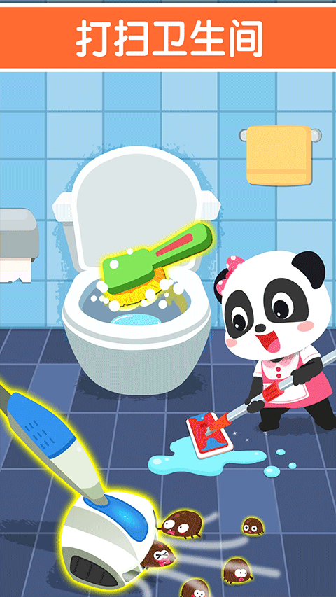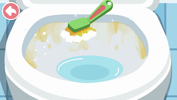 2、小编以卫生间清理为例,进入后会有一段趣味小动画(吸引宝宝的注意力);