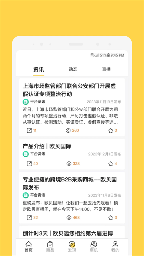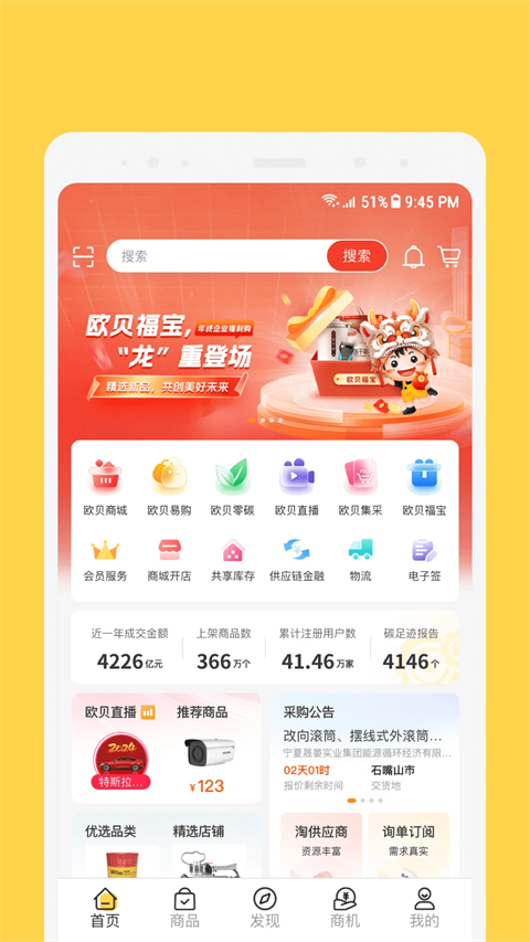 1、丰富多样的产品资源以及交易数据都可以在这里查看。 2、实时了解到业内的最新行情动态,各种资讯可以随时阅读。 3、智能化为你优先推送最新的产品,随时查看新产品信息。 4、找到你需要的产品,专业的商品分类,专业的搜索和导购,专业的B类采购服务,满足您的采购需求。更新日志