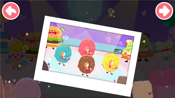 — 派对前先来个Spa 帮面条女士烫个时髦的卷卷发,变身苗条的小泡面。(提升宝宝的审美能力) — 吃饱才有力气参加派对 小果冻肚子饿了,快喂它吃水果:西瓜、橘子、猕猴桃……吃完就是甜甜的夹心果冻啦!(增强宝宝的想象力) — 发生小意外怎么办? 调皮的小饼干摔碎啦!宝宝帮忙找碎片,抹上蜂蜜粘好!又变回一块完整的小饼干!(锻炼宝宝的观察力) — 选件漂亮的礼服 甜甜圈扑通跳进彩池里,换上彩色礼服,一下子就成了巧克力甜甜圈、草莓甜甜圈……(增强宝宝对色彩的认知) — 挑个可爱的配饰 半空中掉下青椒圈和火腿片,快拿盘子来接,送给披萨姐姐做配饰!(培养宝宝的反应速度)宝宝美食派对玩法介绍