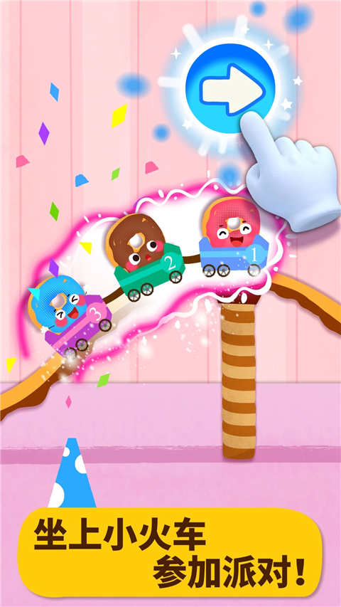 6、数字火车坐好后,开始启航了,点击红字箭头,一起往甜甜圈的小料出发吧!