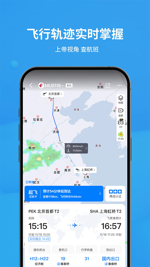 【因为专业,更懂飞行】 1、查航班:全球航班信息秒级更新,实时飞机轨迹追踪,延误提前知晓。 2、飞行记录:真实飞行轨迹,记录探索过的世界。 3、手机值机:提供国内/国际航班网上值机服务,提前选择心仪座位。 4、机票预订:更多可选维度,专业旅客之选,直营机票更放心。 【因为专业,出行必备】 1、出行服务:酒店预订、专车接送机,一款APP满足您所有的出行需求。 2、为亲友关注:亲友乘机或接机的时候,即使没有安装飞常准,也可以通过短信或者微信消息的方式把航班动态分享给他,让你牵挂的人更放心。 3、飞行圈社区:大V带路,时刻掌握旅行新姿势,让飞行更好玩 4、输入身份证、姓名之后,点击办理值机即可。注意网上值机通常在航班起飞前1天的14:00之后可以办理,起飞前2小时停止办理更新日志