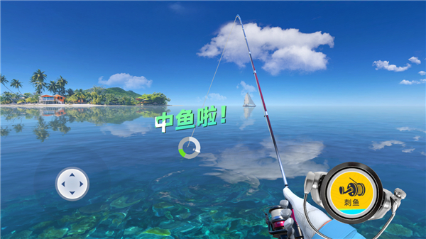 6、中鱼后根据鱼的反方向移动左下角的方向键,同时按收线在黄色的区域中,不要超过否则容易断线;