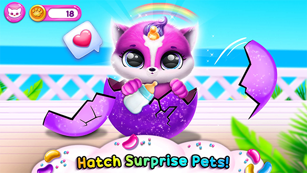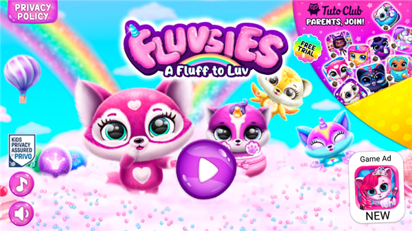 1、孵化与照料 你知道吗?从惊奇蛋中能够孵化出这些毛绒绒的小家伙!只要将两只 Fluvsies 放在魔法合成机里,你就能获得一颗新的蛋,等待孵化。每个小宠物都是一份大惊喜! 2、收集所有宠物 可收集的 Fluvsies 许许多多!每只宠物都无比独特,但它们都喜欢魔法、糖果和玩玩具!每个人都会找到自己最喜欢的动物!收集所有虚拟宠物:从粉红小猫到小小的彩虹独角兽! 3、时尚沙龙 现在,你可以为你的虚拟宠物换上时尚的外观!在成堆的可爱服装和饰品中进行选择,将 Fluvsies 变为真正的宠物时尚达人,还能探索可爱的面部彩绘设计! 4、玩出快乐 一定要好好照顾你的虚拟小动物 – 它们就和小孩子没什么两样!为你的口袋小宠物喂食,让它们开心:玩玩具、一起制作东西、探索孩童玩的小游戏!游戏玩法