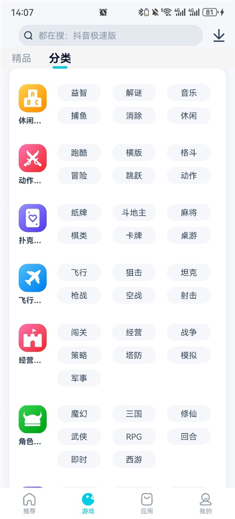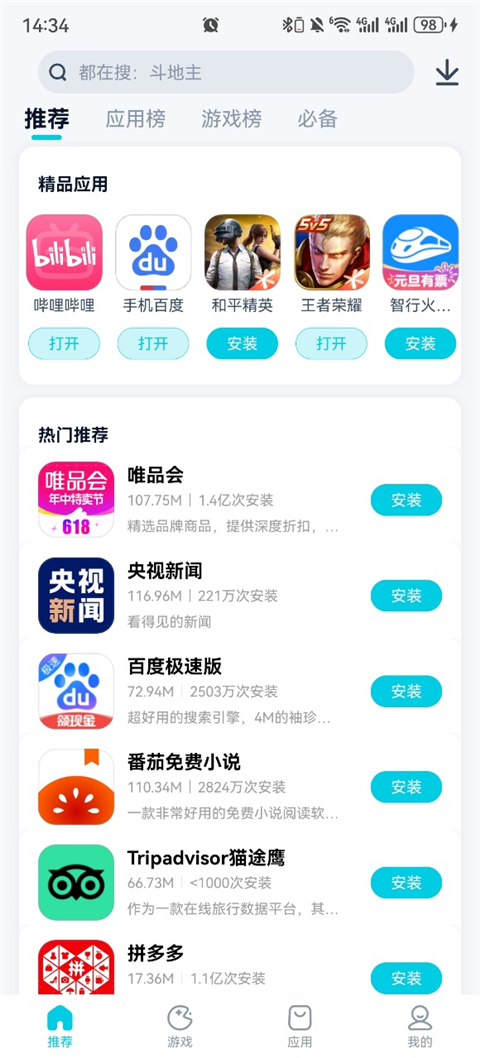 2、也可以在首页根据不同排行榜类型中下载感兴趣的应用以及游戏;