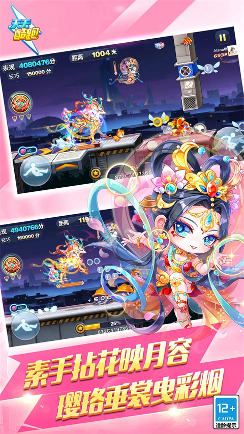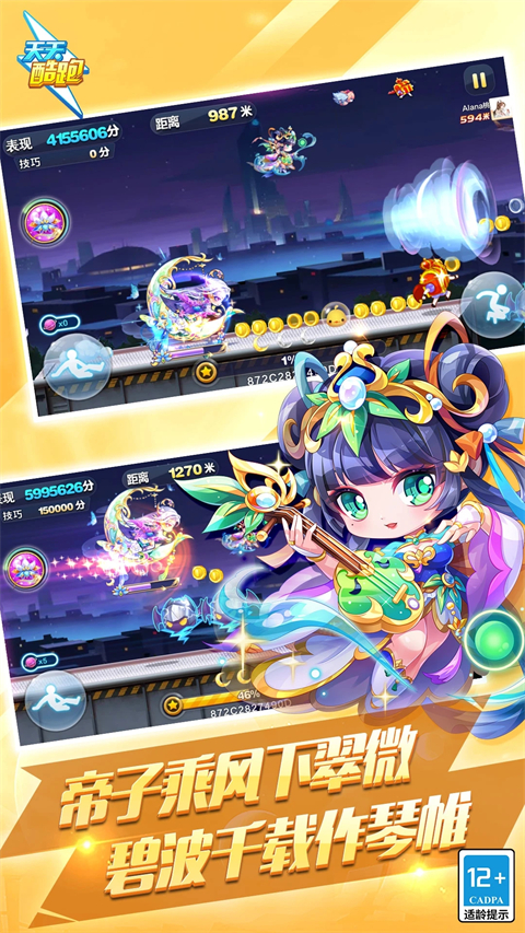 1、限时兑换、积分抽奖,好运不停步! “积分兑换”隆重开幕,现在可以用积分兑换无法在商城中购买的稀有角色、稀有坐骑和稀有宠物!“积分抽奖”惊喜连连,卡哇伊的扭蛋机还将给你带来无穷的欢乐! 2、神圣祝福、试用体验,好玩不坑爹! 新角色、新坐骑、新宠物……琳琅满目的新品不仅可以通过“神圣祝福”来获得全新体验,现在更有机会可以通过积分抽奖来赢得“试用”的机会。业界良心,真正好玩不坑爹!在酷跑的路上,我们一直相伴! 3、超炫玩法令你酣畅淋漓! 极简:掌握“跳跃”与“下滑”两个按钮,你就掌握了整个酷跑世界;极酷:酷炫坐骑助力奔跑;超萌宠物让奔跑不再单调;极挑战:一重重令人意想不到的成就任务,燃起你挑战自我的熊熊信念! 4、你不是一个人在奔跑! 奋力拼抢排行榜金皇冠、在朋友圈和QQ空间晒出自己的成绩让所有人来膜拜……从此,你不再是一个人在奔跑!天天酷跑竞速最强搭配