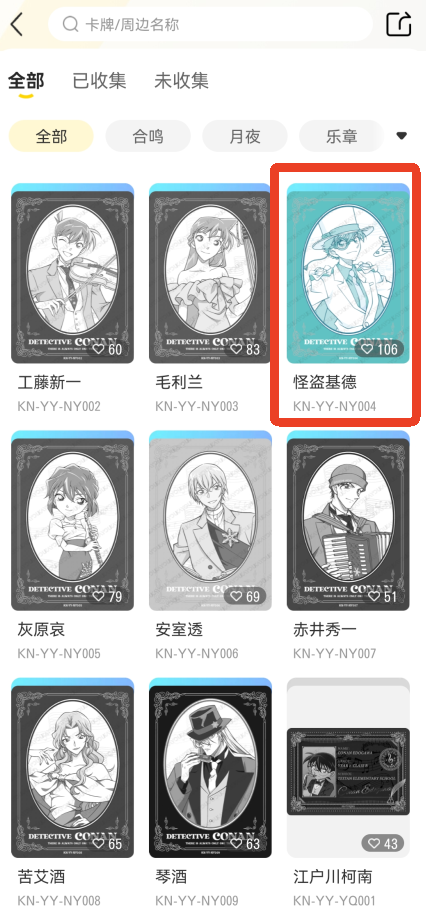 需要在软件内的线上抽卡机内抽到这个卡才能点亮。 1、我们以名侦探柯南的为例,直接搜索这个卡包的名字进入到线上抽卡机页面。