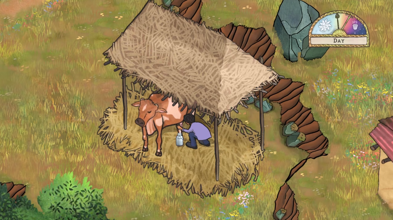 3、玩家还可以前往牛棚进行挤奶操作。