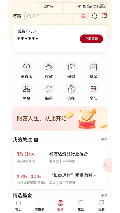 1、资金保管箱,全力保障您的资金安全; 2、全新增加多项智能识别技术,让自己成为通行证; 3、安全性提升,手势密码,多种方式保证账户安全; 4、生活功能,生活圈,充值缴费,只为满足您的需求; 5、优化后的全新用户界面,理财、基金、资讯信息,一目了然。更新日志
