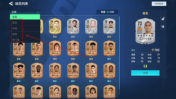 1、游戏内球员分为前场、中场、后场、守门员四种类型的球员,每种球员都着不同的作用,玩家可以自由搭配。