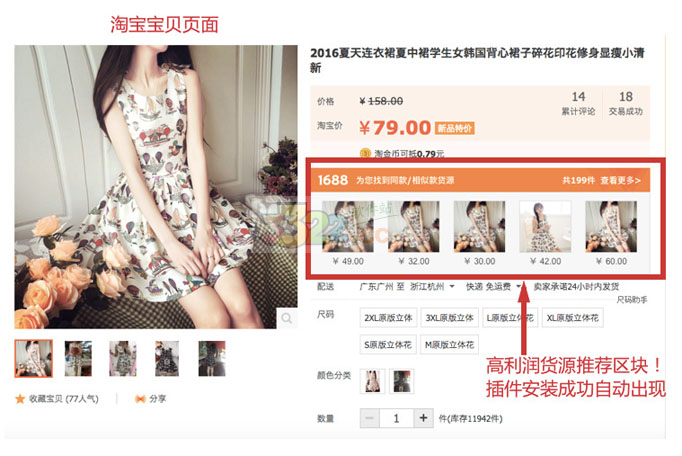 1、安装好后,当你浏览近4亿的淘宝天猫的宝贝时,会自动出现1688的同款,相似款货源推荐!