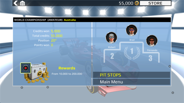 1、进入真实方程式赛车模拟游戏,选择世界锦标赛,快速比赛以及锦标赛等模式,新手建议选择第一个模式,点击“START CHAMPIOINSHIP”。