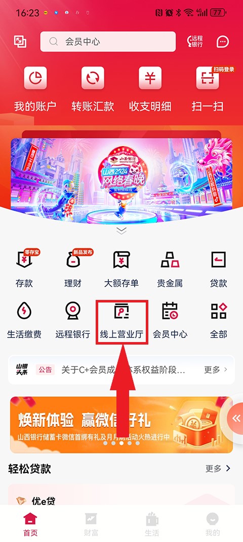 1、线上营业厅 用户想要预约业务服务,需要在首页点击“线上营业厅”,进入业务营业厅。