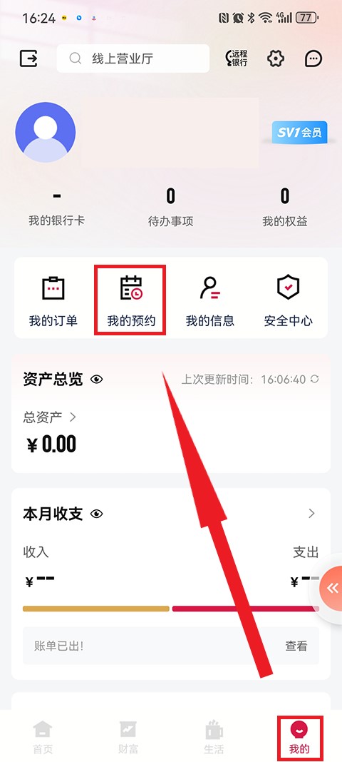 用户可以点击“我的”,进入个人中心,点击上方“我的预约”,查看自己预约的业务。