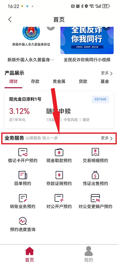 进入页面后,用户需要往下翻,找到“业务服务”,选择好自己要预约的服务。