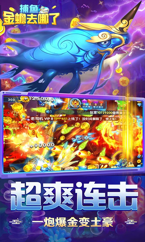 1、钻头炮、电磁炮、连环炸弹、雷神锤,呈现真实暴富现场! 2、各大BOSS隆重登场,一炮千倍,变身亿万富豪! 3、爆金玩法,高额彩金等你来,上分赢头奖无人能挡! 4、道具赠送,赢取海量奖品,分享给好友一起发发发! 5、技能超酷炫,雷霆万钧震撼全场,万炮齐发谁与争锋! 6、还原经典机台,创新玩法加持,特色结合全网独一无二!捕鱼金蟾去哪了红包版游戏攻略