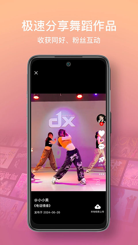 1、专业舞蹈老师保姆式教学 分解动作保姆式讲解,零基础学舞也能事半功倍; 2、在家也能使用 随时随地,在家也能快速进入学舞、P舞的状态; 3、多种实用功能 手机投屏、投屏到笔记本电脑、调整播放速度、镜面翻转、精心分段的内容等等; 4、丰富的潮流MTV舞、女团舞、韩舞、街舞、爵士舞内容 BLACKPINK、(G)I-DLE、时代少年团、Aespa、NewJeans等男女团经典作品的教学。有心跳舞蹈app使用教程