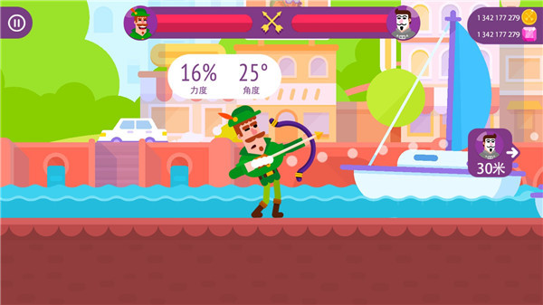 1、首先进入弓箭手们游戏,通过滑动屏幕来控制力度、角度和角色的攻击方向;