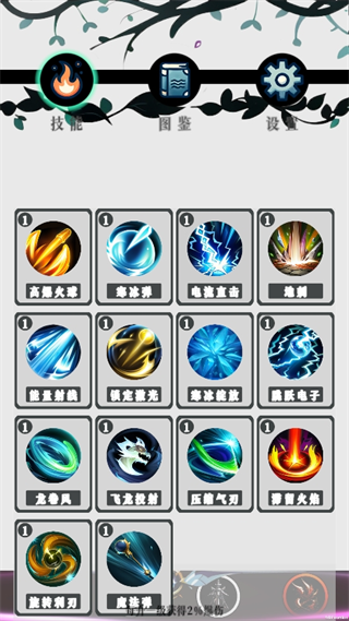 3、上面的等级提升一级就可以选择一种技能。