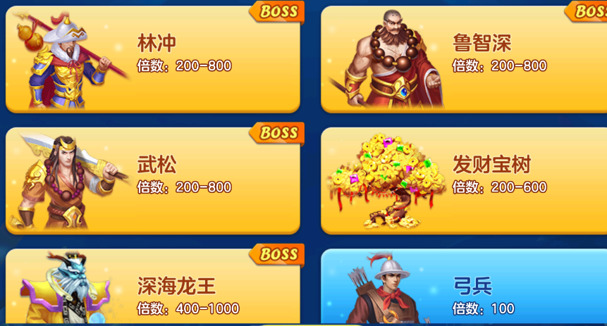 BOSS鱼种:林冲、鲁智深、武松、深海龙王
