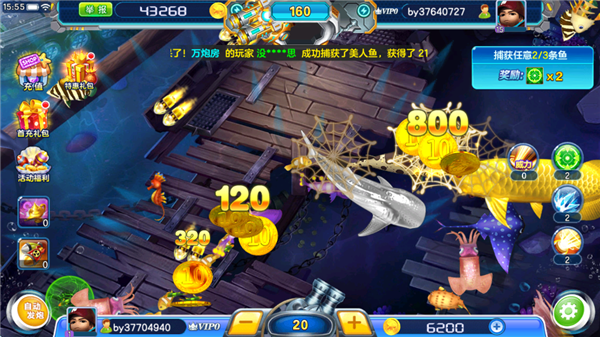 连续攻击50次场上最高倍非普通鱼,死亡概率提升3倍,每次消耗是当前炮倍2倍。