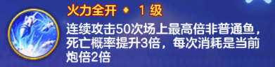 连续攻击50次场上最高倍非普通鱼死亡概率提升3倍,每次消耗是当前炮倍2倍。