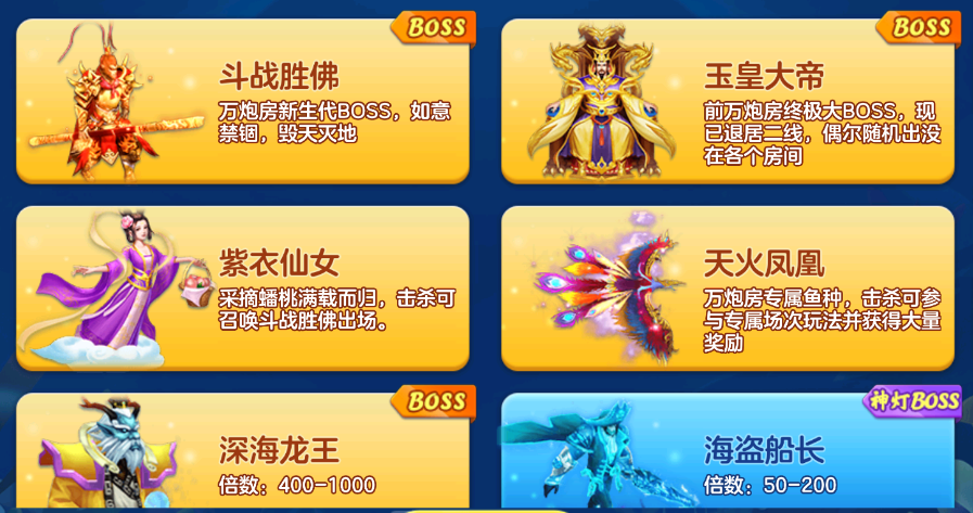 BOSS鱼种:斗战胜佛、玉皇大帝、深海龙王