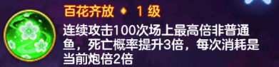 连续攻击100次场上最高倍非普通鱼,死亡概率提升2倍,每次消耗与当前炮倍相同。