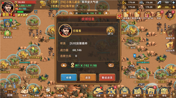 7、可以与成员【集结进攻】其他统领或者占领总督府,称霸州地。